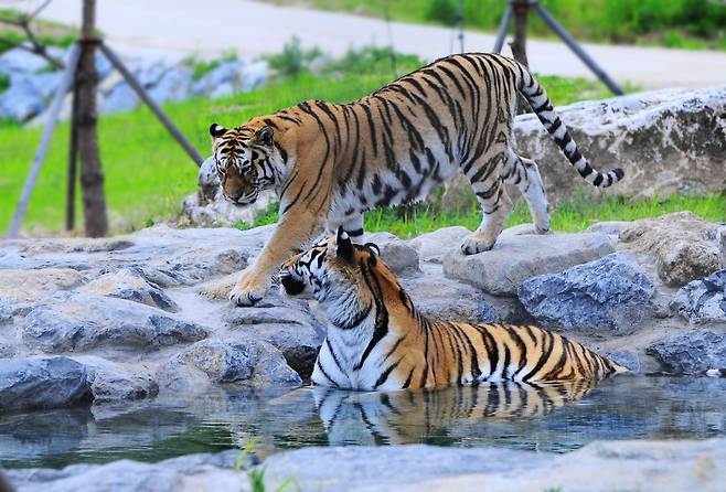 이곳의 대표 명소 중 하나는 ‘호랑이숲’. 백두대간의 상징 동물인 백두산호랑이가 실제로 생활하고 있는 구역으로, 방문객들은 생태친화적으로 조성된 환경 속에서 호랑이를 가까이에서 관찰할 수 있습니다.