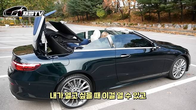 E 클래스 카브리올레 450 타면서 느끼는 장점은 내가 열고 싶을 때 뚜껑을 열 수 있고... '뚜따'라고 하죠. 이건 살짝 쑥스러움 없어야 할 수 있어요. 저는 창문도 무조건 내려요. 사실 평상시에 뚜껑을 잘 안 열어도 원래부터 열 수 있는 차인데 안 여는 건지, 아니면 아예 못 여는 차인지는 아예 다른 거거든요. 근데 항상 내가 열고 싶을 땐 열 수 있다는 게 장점이죠. 그리고 또 실내가 너무 예뻐요. 제가 실내에 반해서 산 거잖아요.