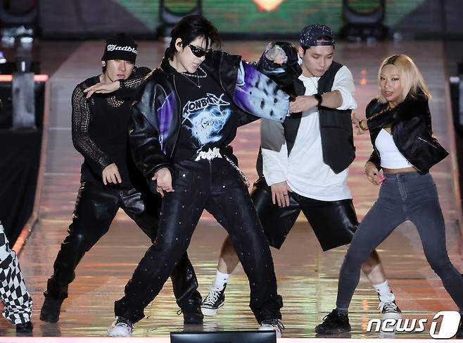 (서울=뉴스1) 김진환 기자 = 가수 지코가 8일 오후 서울 강남구 청담역 인근 영동대로에 열린 ‘영동대로 KPOP 콘서트’에서 열정적인 무대를 선보이고 있다. 2023.10.8/뉴스1