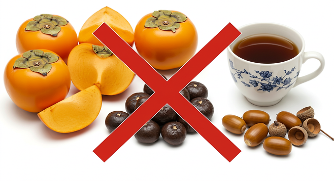 - 감: 탄닌이 변을 돌처럼 굳게 함