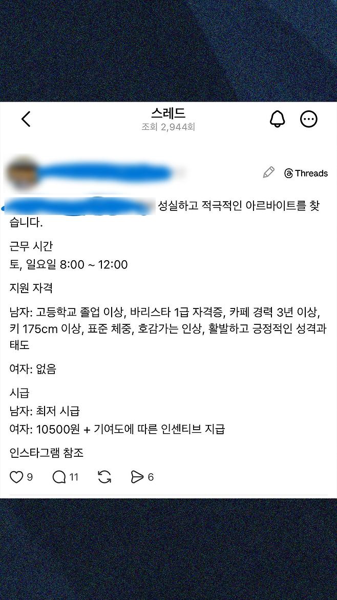 여기에 과거 A씨가 올렸던 아르바이트 채용 공고와 모순된 발언들이 추가로 발굴되면서 논란은 새로운 국면을 맞이했다. 그는 남성 지원자에게 '키 175cm 이상, 호감형 인상, 바리스타 1급 자격증, 경력 3년 이상'이라는 매우 까다로운 자격 요건을 내걸고도 최저시급을 제시했다. 반면 여성 지원자에게는 아무런 자격 요건 없이 시급 1만 500원과 인센티브를 약속했다. 이는 명백히 남녀고용평등법을 정면으로 위반할 소지가 다분한 노골적인 성차별적 고용 행태다. 더욱 기가 막힌 것은 그의 과거 SNS 발언이다. A씨는 과거 "저는 자격증과 학원에 대해 꽤 회의적인 편이며, 대부분 독학으로 해결했다"며 자격증 무용론을 설파한 바 있다. 본인 스스로는 자격증을 경시하면서 정작 최저시급을 쥐여주는 남성 알바생에게는 민간 자격증 최고 등급인 바리스타 1급을 요구한 것이다. 이러한 극단적인 모순과 내로남불식 태도는 대중으로 하여금 일말의 동정심마저 거두게 만들었다.