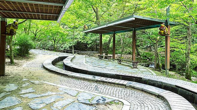 특히 입구 인근에는 족욕탕과 쉼터가 마련되어 있어 산행 전후 가볍게 피로를 풀 수 있다. 산책로 중간중간 정자도 있어, 돗자리를 펴고 쉬어 가는 방문객도 많다.