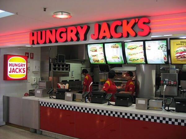 버거킹은 전 세계에서 브랜드 이름 그대로를 내세워 영업을 하고 있다. 다만 여기에서 호주는 예외다. 버거킹의 호주에서의 브랜드명은 ‘헝그리잭스’다. 1971년 버거킹의 호주 진출 당시에, 이미 그곳에 버거킹이라는 음식점이 상표등록이 되어 있었기 때문이다. 버거킹은 호주에서의 영업을 위해 모회사가 상표권을 소유하고 있던 팬케이크 브랜드 ‘헝그리잭’을 변형한 헝그리잭스를 상호로 결정했으며, 지금까지 이 상호로 영업을 이어가고 있다.