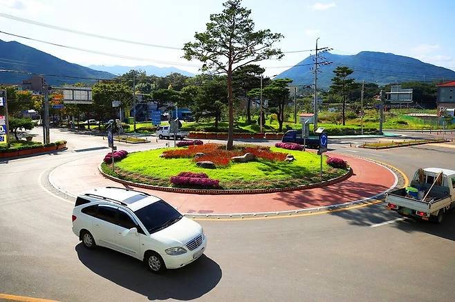 회전교차로의 화물차 턱은 대형차를 위한 공간이지, 일반 차량의 편의를 위한 것이 아니다.