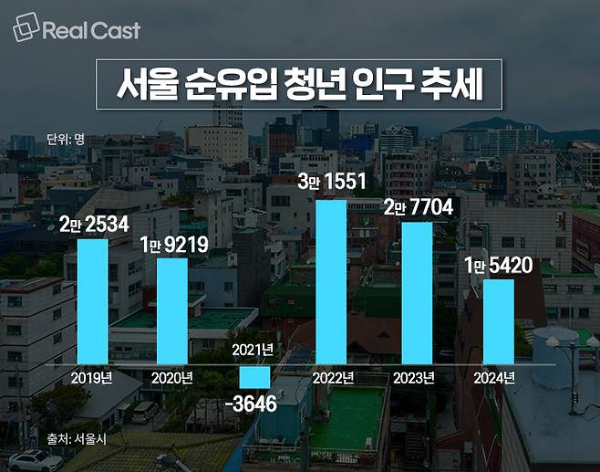 최근 발표한 ‘서울특별시 청년 통계(2023)’에 따르면 서울로 순유입된 청년인구가 2022년 3만1,551명, 2023년 2만7,704명, 2024년 1만5,420명으로 3년 연속 증가세를 보였습니다. 이에 월세 수요가 증가하면서 임대료 수준 또한 점차 높아지는 것으로 분석됩니다.