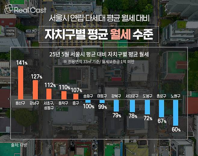 - 용산구 월세가 서울 평균의 141% 도달, 최근 한 달 새 최대 상승폭