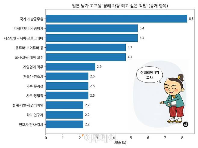 日 고교생 장래희망 1위는 ‘공무원’⋯한국과 차이 살펴보니
