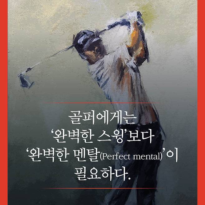 ▶완벽한 스윙’보다 ‘완벽한 멘탈(Perfect mental)’이 필요하다=프로 골퍼 중에는 자신만의 독특한 스윙을 가지고 위대한 성적을 기록한 선수들이 많다. 8자 스윙으로 유명한 짐 퓨릭은 PGA 통산 29승, 손목이 꺾인 톱스윙을 하는 더스틴 존슨은 28승, 오버스윙으로 잘 알려진 존 댈리는 18승, 자신만의 독특한 백스윙을 구축한 박인비는 골든 그랜드슬램과 세계랭킹 1위를 기록했다. 이들은 한결같이 완벽한 스윙 동작을 만드는 과정이 그토록 중요하게 여겨지는 데 대해 다시 생각하게 만든다.