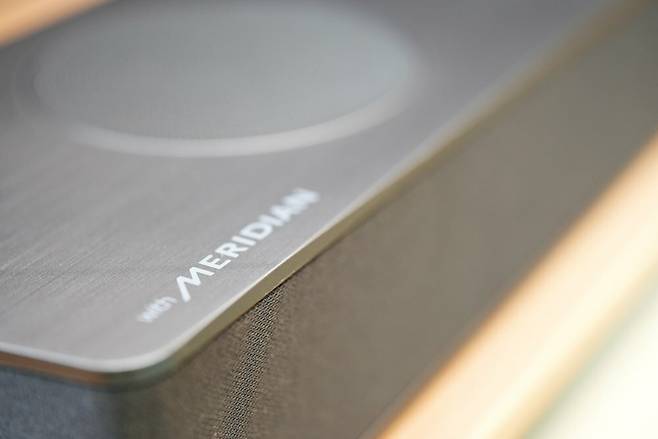 역시나 프리미엄 오디오 브랜드인 메리디안과 협업하여서 좌측에는 로고를 포함하고 있으며, 우측에는 LG 로고가 깔끔하게 들어가 있습니다.