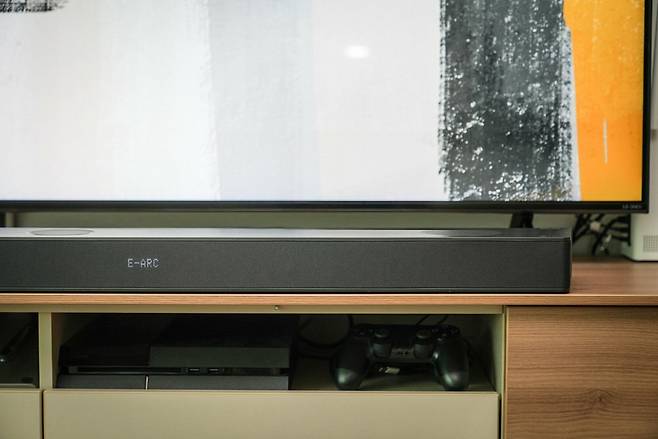 TV와 연결할 경우 eARC/ARC 표기가 된 부분과 같이 연결하여 사용하면 됩니다. 최근 TV는 단자만 연결되면 자동으로 인식되며, 그렇지 않을 경우는 TV에서의 음향 출력 설정 메뉴에서 세팅해 주면 됩니다.