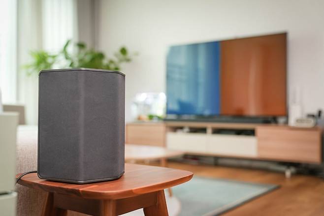 보통 측후방에 위치하는 리어 스피커 1쌍은 각도를 두어 전면으로 2개의 스피커가 상방향 스피커 1개로 이루어져 있습니다. 기존의 홈시어터 시스템을 생각한다면 앰프를 시작으로 서브우퍼 및 여러 스피커를 어디에 배치할지 각각을 케이블로 어떻게 세팅해야 할지 설치부터 많은 어려움이 생겨 웬만큼 오디오에 대한 지식이 없다면 포기하시거나 값비싼 비용을 들여서 설치해도 집안 인테리어를 해치거나 하는 모습을 보이곤 했던 것에 비하면 정말 심플한 구성입니다.