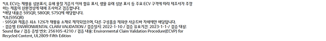 자동 캘리브레이션 기능이 있어 세팅한 위치나 공간에 최적화된 음향을 들려주게 하는 세팅 또한 있어 오디오에 대한 전문 지식이 없어도 문제없이 빠른 세팅이 가능하며, 무선의 경우 각 유닛의 연결이 종종 끊기는 경우들이 있는데 G 사운드바 S95QR의 경우 사운드바와 우퍼 리어 스피커마다 신호 증폭기가 추가되고 전면은 메탈 윗면은 몰드 소재를 사용하여 전체적인 신호 전달이 원활하게 디자인되어 있으며, 내부는 재활용 플라스틱 등을 사용하여 환경을 생각하며 만들어졌다는 점을 강조하고도 있습니다.