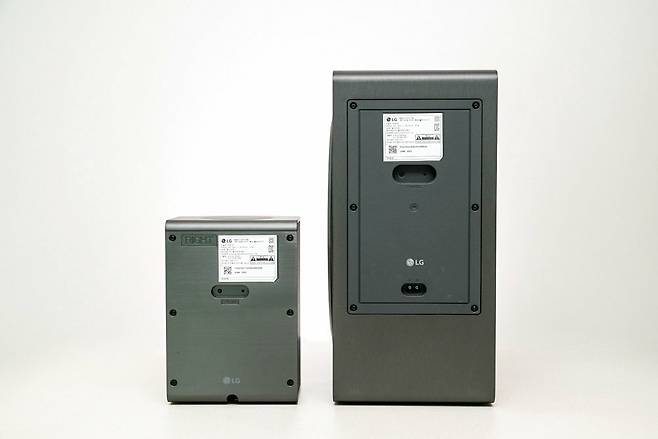 서브우퍼와 리어 스피커의 후면 또한 무선 타입이기 때문에 전원 케이블 단자와 페어링 버튼, 페어링 인디케이터 LED만 있을 정도로 심플한 모습을 보입니다.