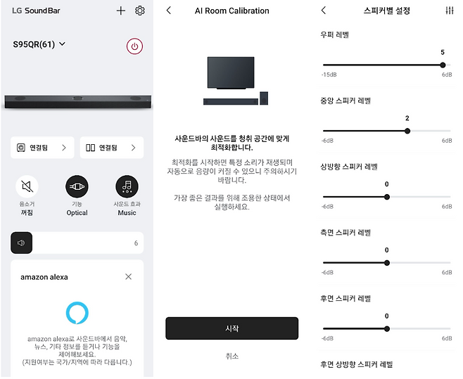 세부적인 설정을 변경 가능한 LG 사운드바 앱