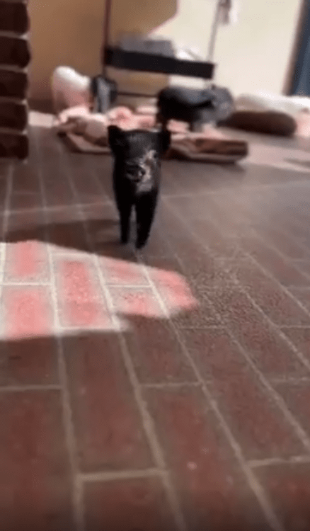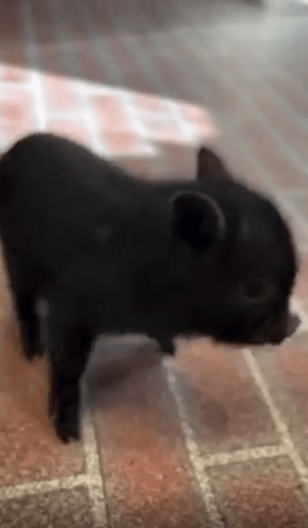 한 마리의 새끼 돼지가 작은 발걸음으로 이리저리 움직입니다. 온몸이 검고 반짝이는 털로 덮여 있어 마치 작은 먹구름 같은 모습. 하지만 이 돼지는 단순히 조용히 걷는 게 아닙니다.