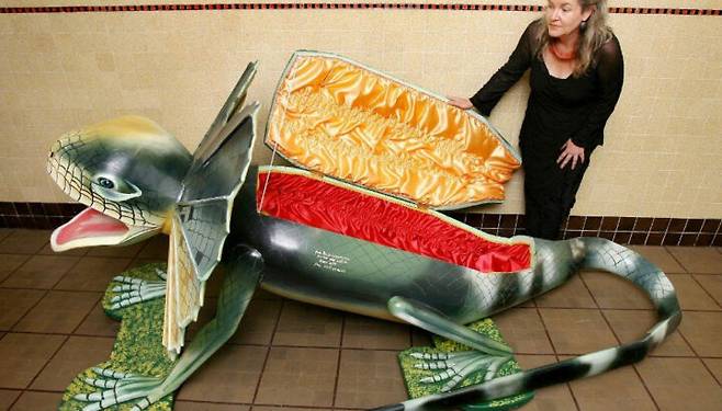 팬시 관이란 콜라를 자주 마시던 고인에게는 콜라병 모양의 관을 만들어주는 식입니다.