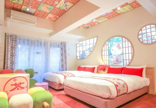일본 전통적인 도시인 교토에서는 일본 고유 전통적인 헬로키티 컨셉의 객실이 있습니다. 교토 레시 스테이 호텔의 키티 객실은 다다미 바닥, 침대 위의 둥근 격자 모양의 창문, 기모노 차림의 키티가 녹차와 일본식 과자를 즐기는 디자인의 객실을 운영 중인데요.