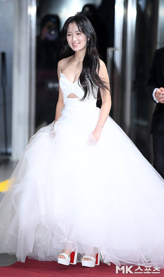 김혜윤은 화이트 튜브탑 드레스를 착용하며 청순한 매력을 극대화했습니다.