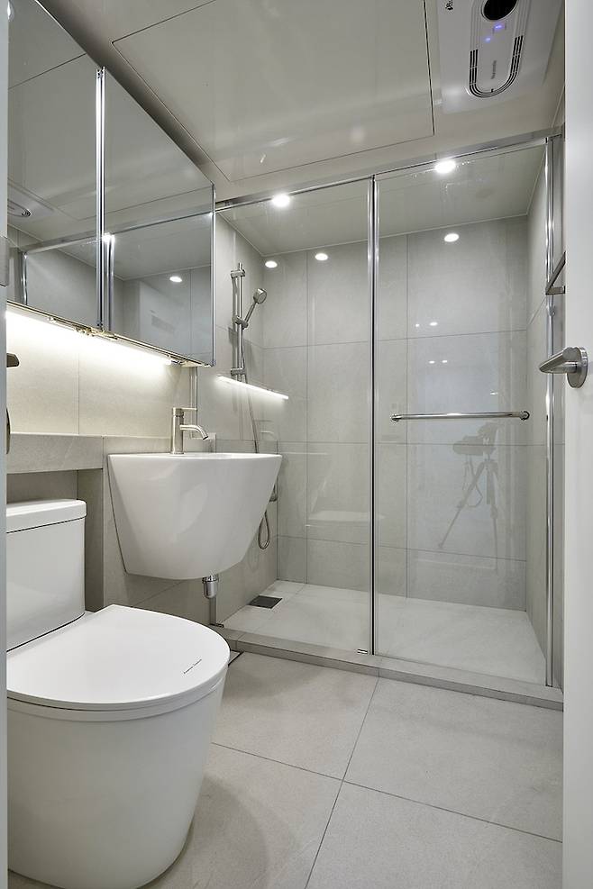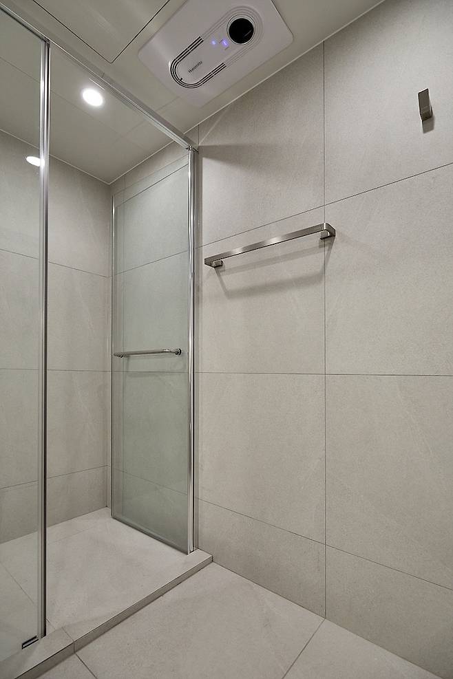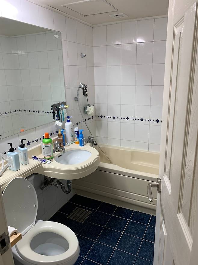 구배 문제로 샤워부스에 턱이 생긴 건 조금 아쉬운 점이지만, 화장실 조건이 원래 그러한 것이니 어쩔 수 없는 점이네요.