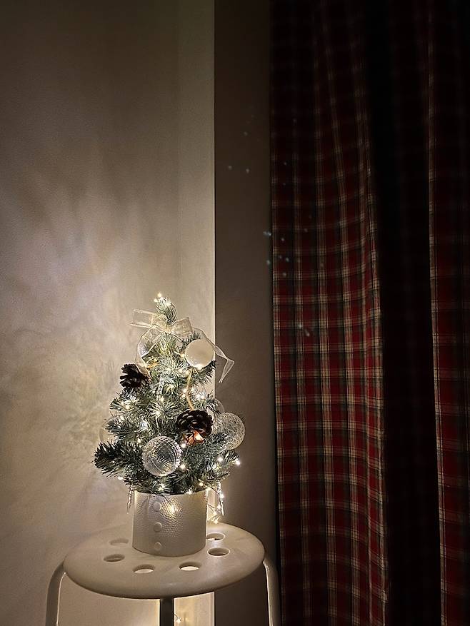 크리스마스 분위기 뿜뿜하는 패브릭과 영롱한 미니 트리로 11월부터 크리스마스 분위기를 냈었답니다. 큰 트리나 많은 시즌 소품은 보관이 참 난감한데, 이렇게 작은 소품과 패브릭만으로도 분위기가 충분히 나서 좋더라고요.