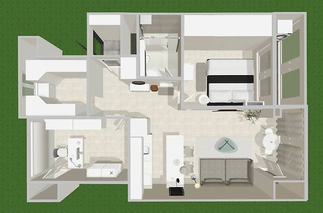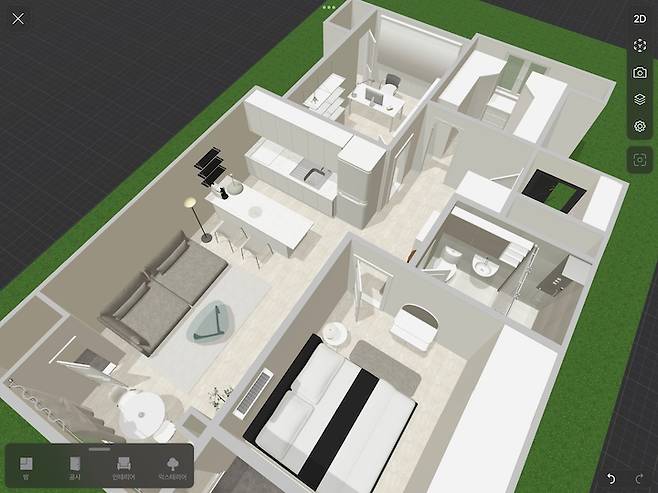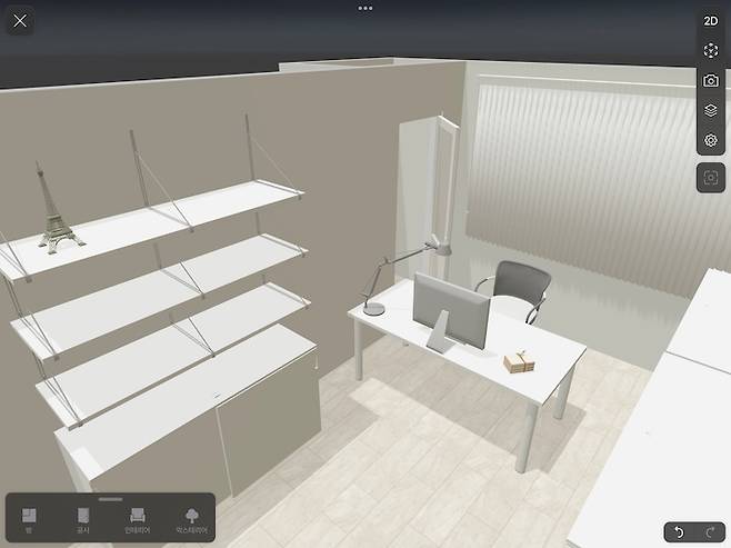 대신에 디자인을 해주신다든가, 3D 도면을 그려주신다든가 하는 건 없어서, 도면을 그릴 수 있는 앱을 찾아서 셀프로 그려보았습니다. 이런저런 앱을 다 다운 받아서 사용해 봤는데, 무료 버전 내에서 제가 원하는 모습을 제일 잘 표현할 수 있었던 'Planner 5D'라는 앱으로 최종 구현해 보았습니다.