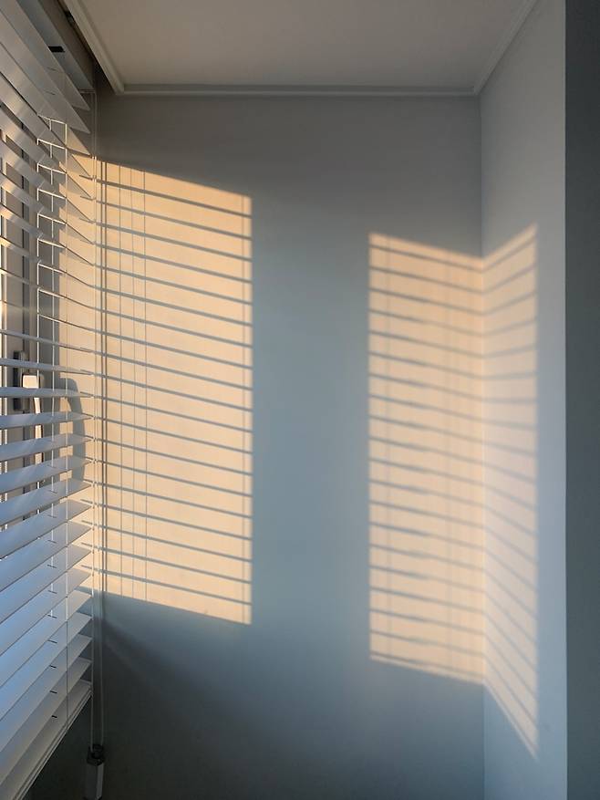 이 방은 북서향의 방이라 오후부터 해가 아주 잘 들어오기 시작합니다. 블라인드 사이로 들어오는 노을빛이 참 예쁘더라고요. 제가 참 애정 하는 순간입니다.