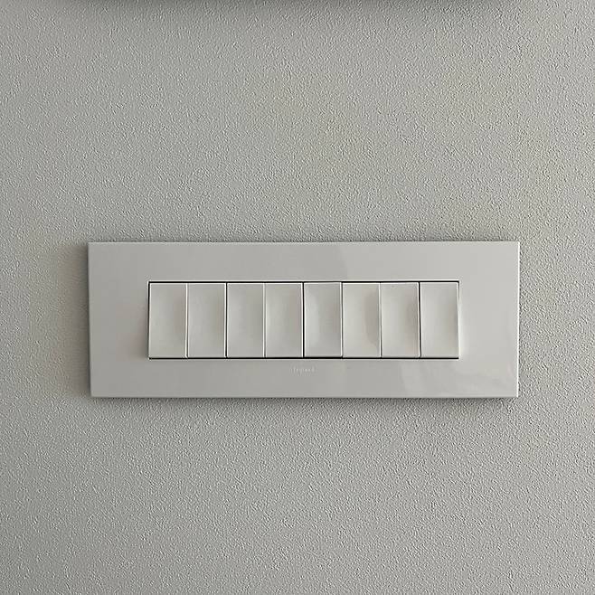 가벽 치면 좋은 점 하나 더! 바로 병렬형 스위치를 설치할 수 있답니다. 볼 때마다 너무 마음에 드는 르그랑 병렬형 스위치! 집을 방문한 친구들이 이 많은 스위치 다 외울 수 있냐고 묻는데 사용하는 빈도수를 고려하여 제가 순서도 지정했기 때문에 저는 사용한 지 하루 만에 다 외웠답니다.