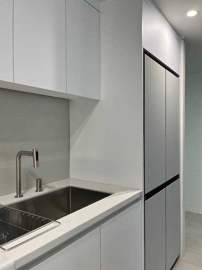 참고로 저는 밥은 압력밥솥에 하기 때문에 밥솥 자리는 필요하지 않았습니다. 리모델링 시 구매할 가전 가구의 사이즈를 미리 알고 있으면 사이즈에 딱 맞는 공간을 구성할 수 있어 좋은 것 같습니다.