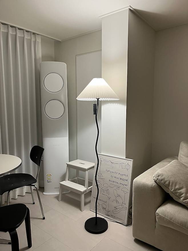 이 조명도 에프에프 컬렉티브의 조명입니다. 이름은 spiral 플로어 램프이고, 구불구불한 선과 플리츠 형태의 갓이 너무 매력적이어서 어떤 분의 집들이 사진에서 보고 한눈에 반했던 조명입니다.