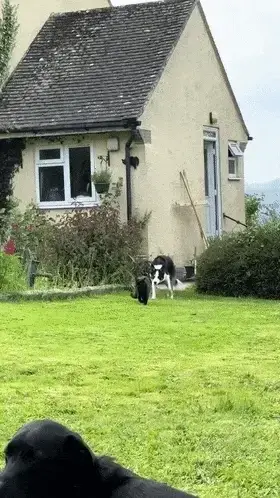 목양 본능에 사로잡혀 엉뚱한 대상을 추적하는 보더콜리의 모습과, 그 상황을 이해하지 못하는 주변 동물들의 반응이 어우러져 웃음 가득한 장면을 만들었습니다!
