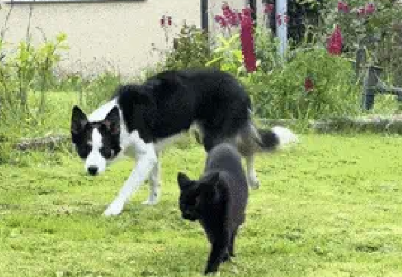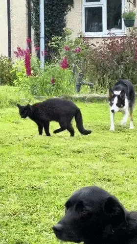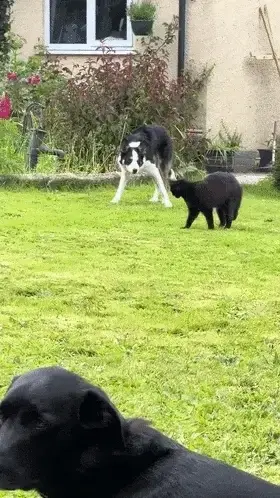 목양 본능이 넘쳐흘러 도저히 참을 수 없는 보더콜 리가 있습니다! 양 대신 고양이를 추적 대상으로 삼았다니, 정말 기발한 선택입니다.