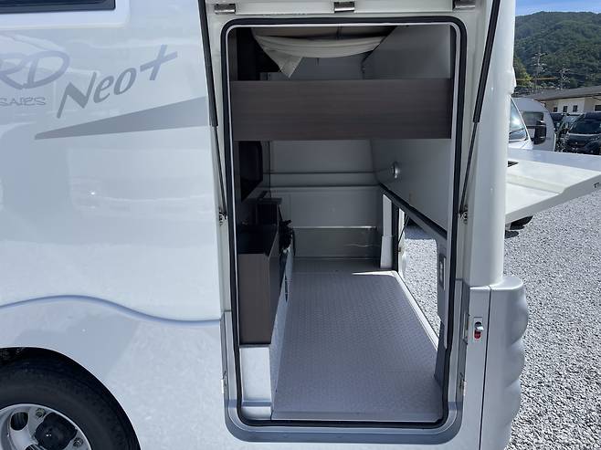 생활 편의시설도 빠짐없이 갖췄다. 주방과 화장실, 냉난방 시스템을 기본적으로 누릴 수 있으며, 후방 침대 공간을 접어 올리면 대형 수납 창고가 나타난다. 해당 공간은 성인도 드나들 수 있을 만큼 넓어 전동 자전거나 카약 등 부피가 큰 레저 장비를 싣기 충분하다. 또한, 내부와 외부에서 모두 접근할 수 있어 활용도가 높다.