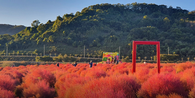 ▶ 특징: 3만㎡ 규모, 2만여 그루의 댑싸리 군락이 가을마다 붉게 물드는 정원. 황화 코스모스, 국화, 백일홍과 함께 가을 풍경을 완성. 무료 주차와 장애인 편의시설도 마련.
