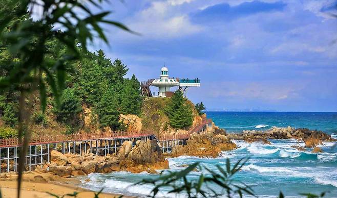 또 하나의 인기 명소는 ‘하조대 스카이전망대’다. 해변과 절벽 사이에 설치된 10m 길이의 투명 유리 스카이워크에서 발아래 파도가 철썩이는 모습을 그대로 감상할 수 있다. 해안초소를 개조해 만든 이 전망대는 동해 바다를 가장 생생하게 마주할 수 있는 이색 포인트로 손꼽힌다.