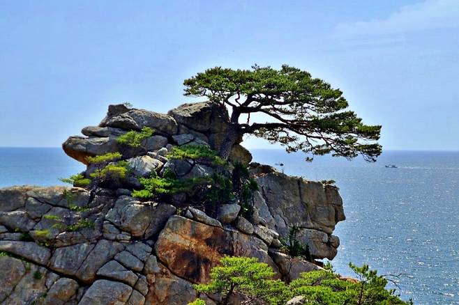 정자에서 내려다보는 동해의 풍광은 과거 애국가 영상에도 등장했을 정도로 웅장하며, 절벽 위 고고히 서 있는 소나무는 ‘애국송’이라는 별칭으로 불릴 만큼 인상적이다.