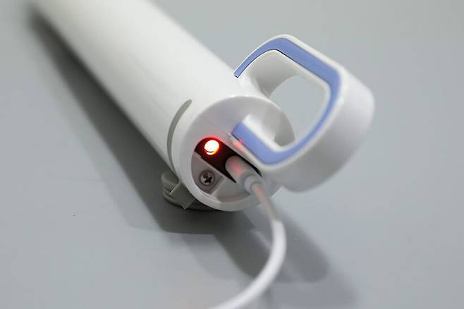사용 전에 우선 충전을 해주어야 하는데, 손잡이 아래쪽에 있는 충전 포트에 케이블을 연결하면 붉은색 LED가 켜지면서 충전 중임을 알린다. 충전이 완료되면 LED 색상은 녹색으로 바뀐다.