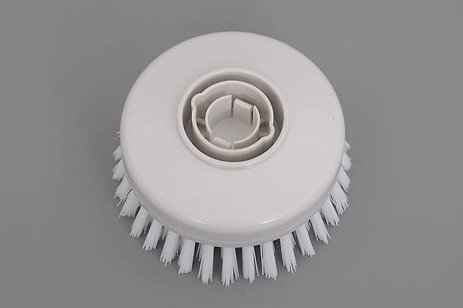 브러시 뒷면을 보면 모터부의 검은색 결합부에 장착하는 부분이 보인다. 브러시가 사용 중 분리되거나 헛돌지 않도록 홈이 파여 있는 것을 확인할 수 있다.