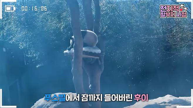 이날 루이와 후이는 평소처럼 푸스빌에서 장난을 치며 신나게 놀았습니다. 그러나 한참을 놀던 후이는 지친 듯 그대로 푸스빌에서 잠이 들어 버렸습니다.