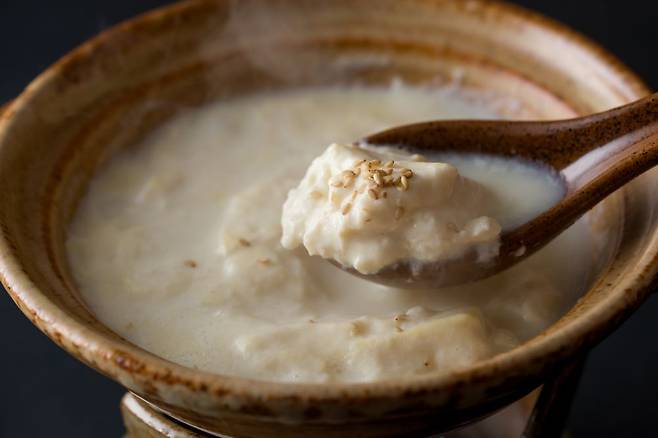 온천수의 미네랄 성분으로 인해 두부가 첫눈처럼 사르르 녹아내리는 듯한 식감이 특징인 두부입니다. 미인 온천의 기운이 들어있다고 해서 너무 많이 먹는 것은 금물!