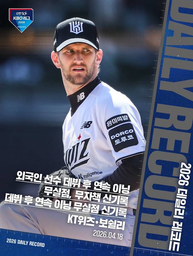 KT 위즈의 케일럽 보쉴리가 KBO리그 데뷔와 동시에 새로운 역사를 썼습니다. 압도적인 투구로 연속 이닝 무실점 기록을 갈아치우며 리그를 대표하는 에이스로 떠올랐습니다.