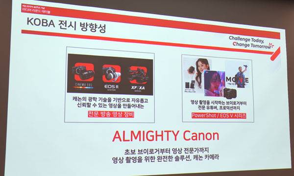 그 밖에 다음 주 코엑스에서 개최되는 국제 방송·미디어·음향·조명 전시회인 KOBA 2025에서 캐논의 전문 방송 영상 장비와 함께 영상 촬영을 시작하는 브이로거부터 전문 유튜버, 프로덕션까지도 관심을 가질 수 있는 파워샷 및 EOS R 시리즈를 만나볼 수 있다고 밝혔다.
