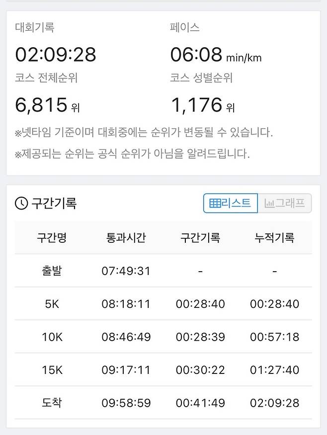 공개된 사진 속 유이는 비가 내리는 궂은 날씨에도 불구하고 환한 미소를 지으며 완주 메달을 든 채 성취감을 만끽하고 있다. 특히 기록지에 선명하게 찍힌 ‘2시간 9분 28초’라는 기록은 평소 그녀의 꾸준한 훈련량을 짐작게 한다.
