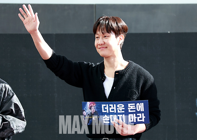 정우는 10일 서울 CGV용산아이파크몰에서 열린 영화 '더러운 돈에 손대지 마라'(감독 김민수·제작 리양필름) 시사회에서 작품에 참여한 소회를 밝혔다.