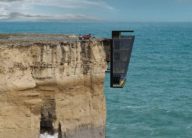 차고를 통해서만 출입이 가능한 절벽에 매달린 아찔한 저택이 공개돼 화제다.