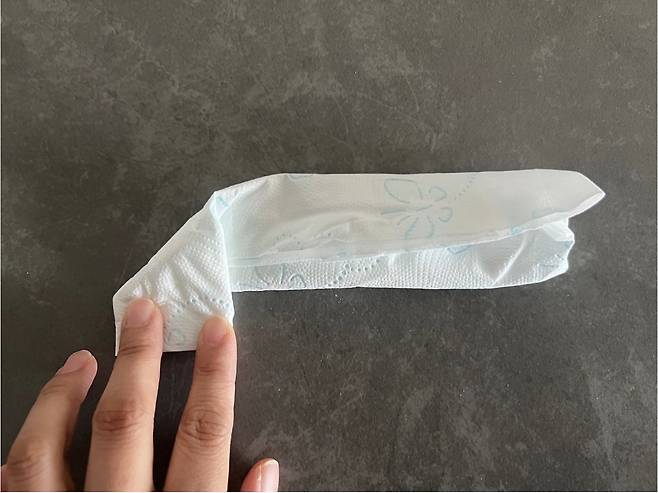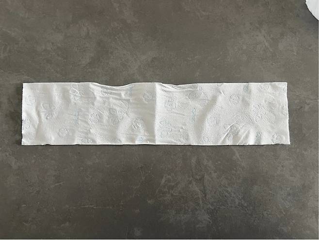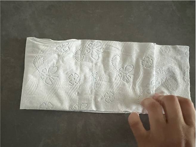 먼저 두루마리 휴지를 4칸만 뜯어 주세요