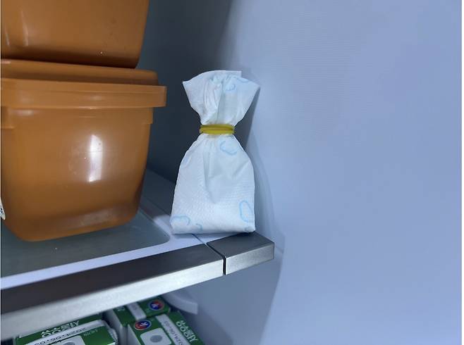 이렇게 몇 개 만들어 냉장고에 넣어주면 쿰쿰한 냄새가 한결 없어져요