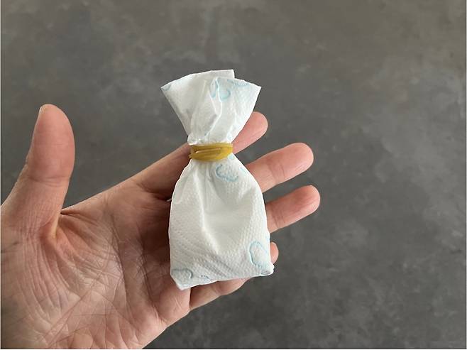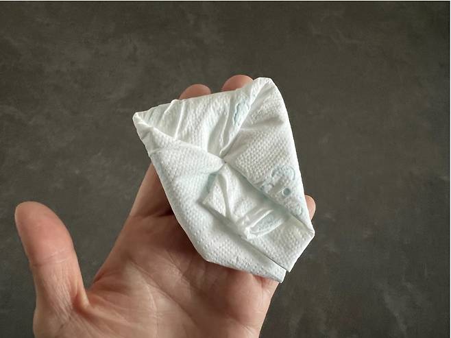 이렇게 휴지로 딱지를 만들어주시면 끝이에요
