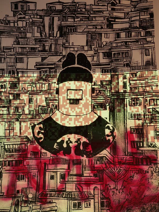 작가는 뚜렷하지 않은 경계에 머물며 먹고 살아야 하는 현실을 이야기한다. 한국은 세대가 세 번 지나기도 전에 식민지에서 벗어나 저출생, 고령화 사회에 이를 만큼 압축적인 성장과 기술 발전을 달성했다. 해결되지 않은 문제들을 묻어놓고 그 위에 새로운 것을 빠르게 올리면서 이루어진 개인화되고 디지털화된 사회는 기묘하고 이상한 지형과 시간성을 띠게 되었다.