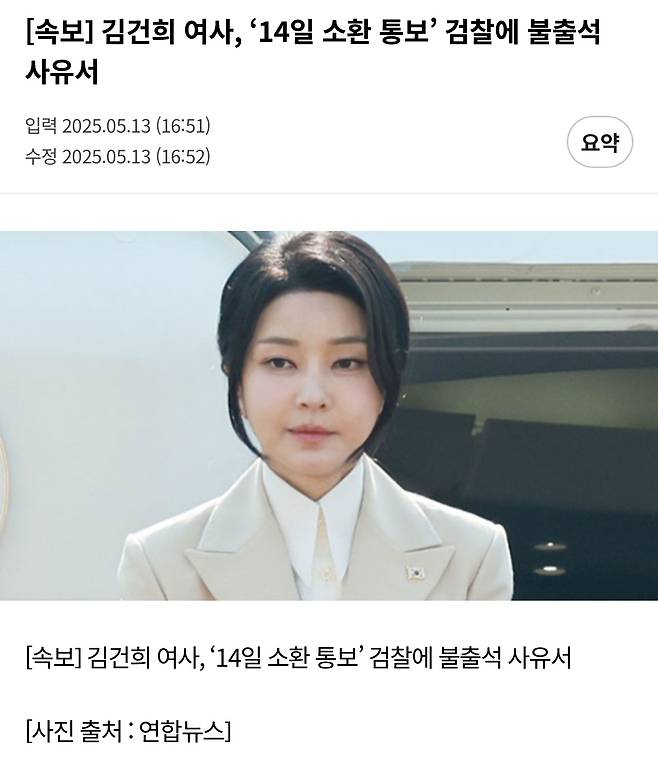 [속보] 김건희 여사, 14일 소환 통보 검찰에 불출석 사유서