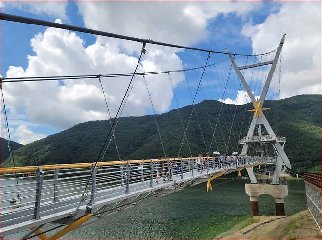 보현산댐 출렁다리는 2021년 착공해 2023년 8월에 개장한 신생 명소입니다. 개장 이후 지금까지 꾸준히 인기를 모으며 영천의 대표 여행지로 자리매김했지요.
